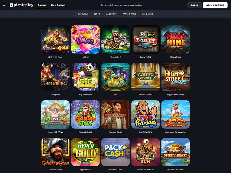 PiratePlay casino est l'un des casinos qui détient dans sa ludothèque les meilleurs jeux gratuits de casino auCanada avec ses de plus de 7 000 titres alimentés par +140 fournisseurs. On compte parmi ces derniers de célèbres logiciels comme Evolution Gaming connu pour ses fameux jeux live gratuits, NetEnt spécialisé dans les machines à sous de tout genre, Yggdrasil populaire pour ses jeux mythique de très bonne qualité avec des graphismes époustouflants.