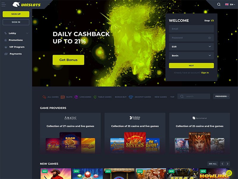 Fournisseurs de renom et +8 000 jeux disponibles sur Unislots Casino